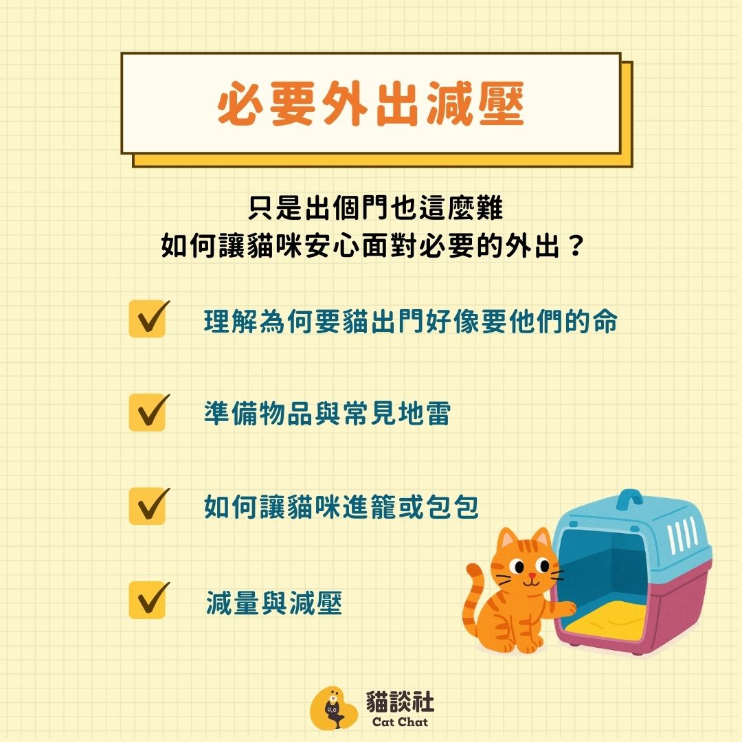 但外出有時是必要的,如何降低壓力、讓貓安心,是每位飼主必修的課題。