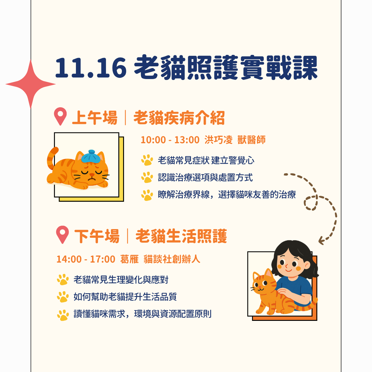 | 【全日場】 11.16 老貓疾病+生活照護 |