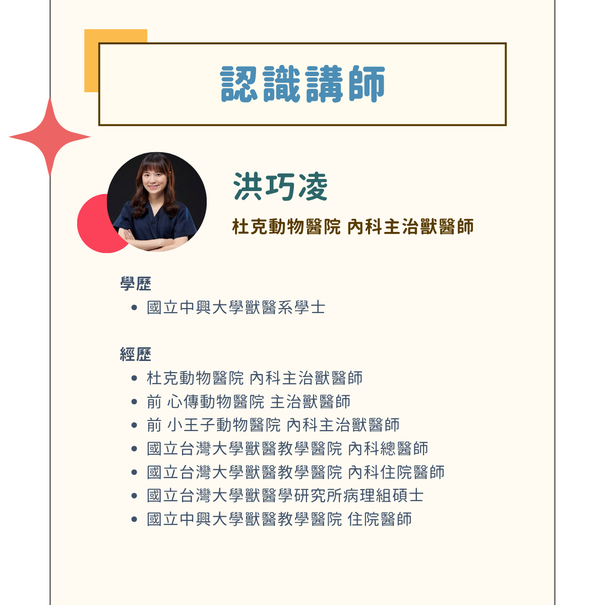 - 10:00–13:00 上午場|洪巧凌|老貓疾病介紹