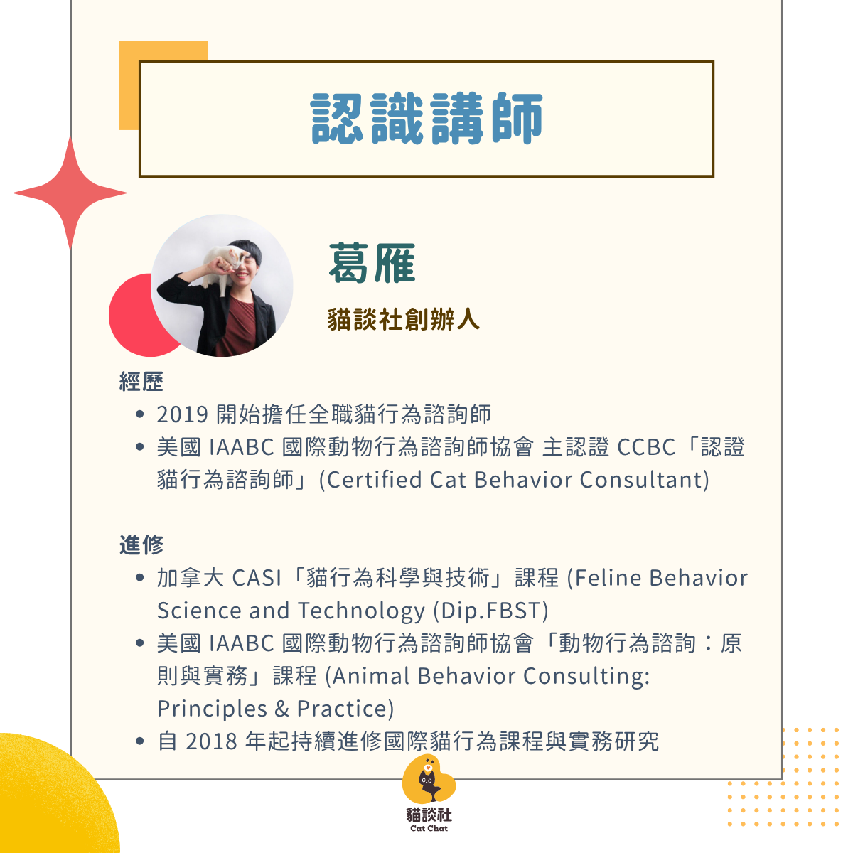 - 14:00–17:00 下午場|葛 雁|老貓生活照護