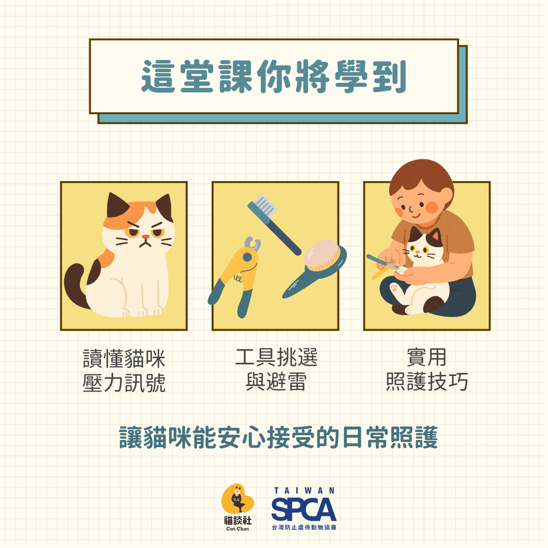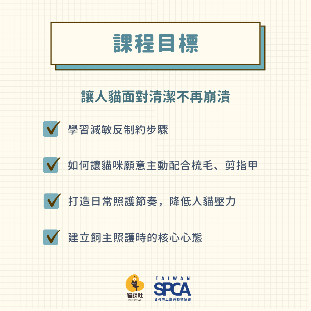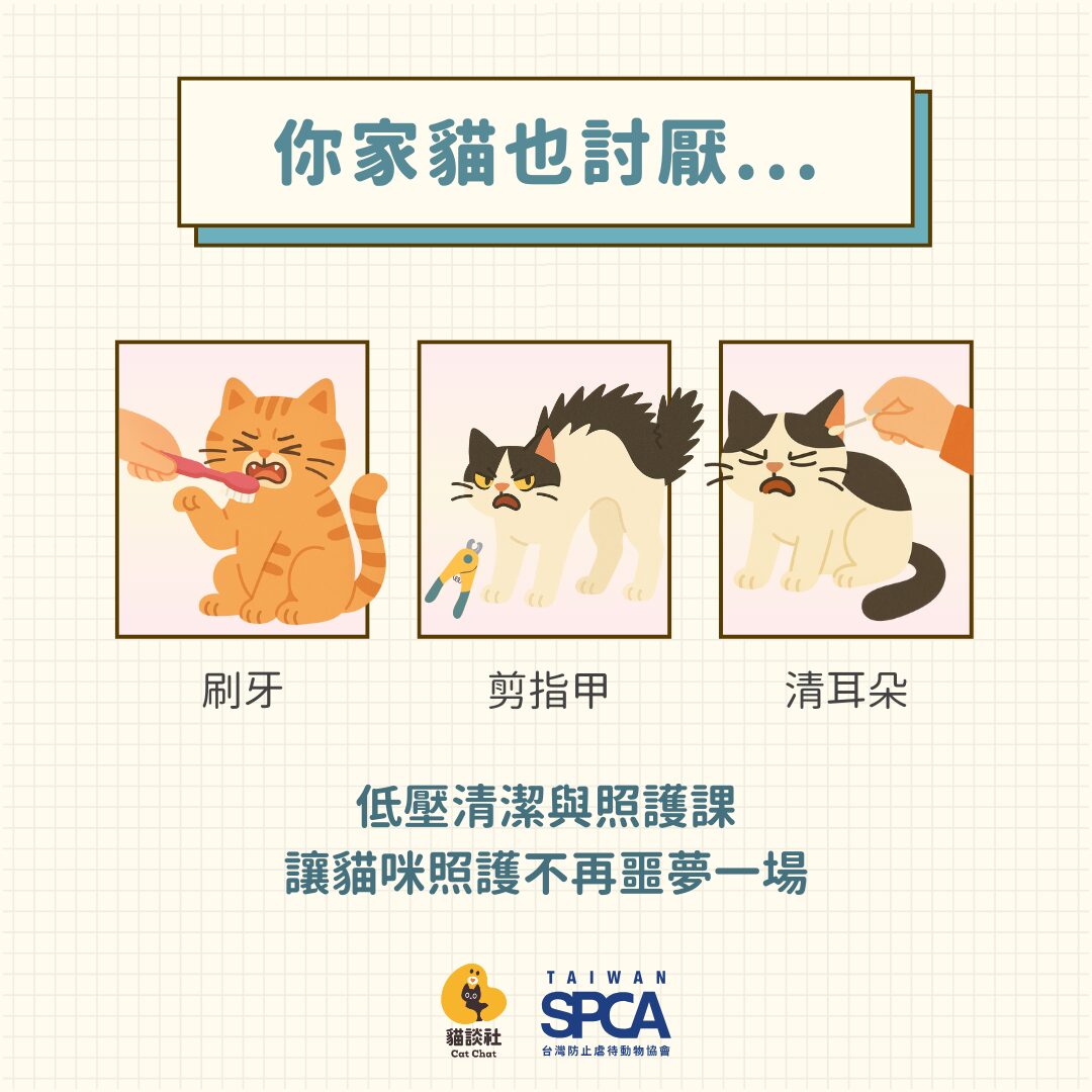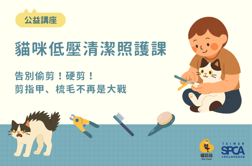 - 這堂「貓咪低壓清潔照護課」,不抓、不扯、不硬來,帶你用科學友善的低壓技巧,循序漸進地讓貓對剪指甲、梳毛、眼耳清潔說OK!
