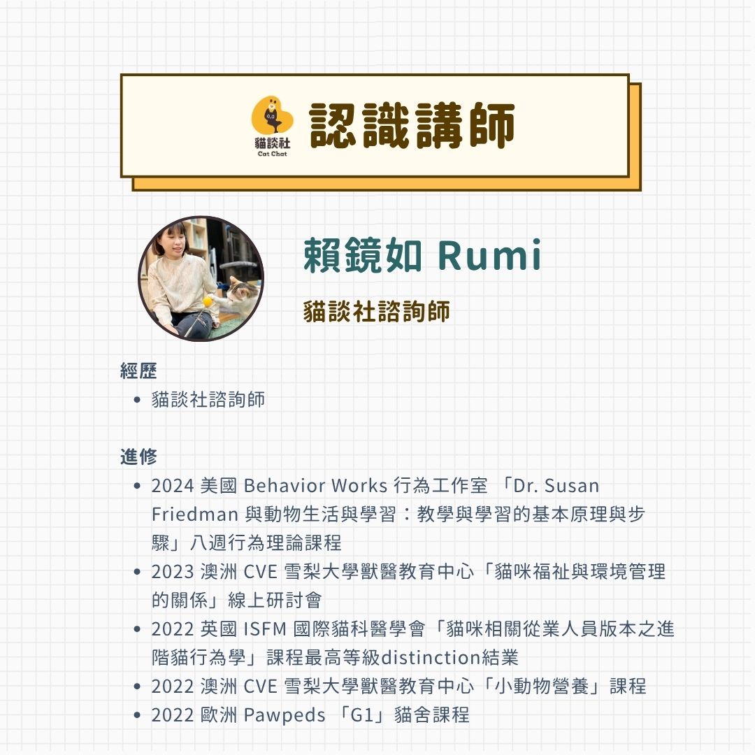 - 13:30–16:00 |貓談社諮詢師 Rumi